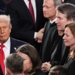 President Donald Trump walks past Supreme Court Chief Justice John Roberts, Associate Justice Elena Kagan, Associate Justice Brent Kavanaugh and Associate Justice Mary Coney Barrett as he arrives for the State of the Union address during a Joint Session of Congress at the U.S. Capitol on Feb. 24, 2026, in Washington, D.C.