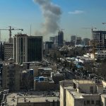 TOPSHOT – A plume of smoke rises following a reported explosion in Tehran on February 28, 2026. (Photo by AFP via Getty Images)