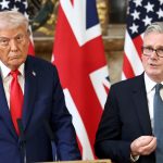 U.S. President Donald Trump and British Prime Minister Keir Starmer hold a press conference following their meeting at Chequers, near Aylesbury, Britain, Sept. 18, 2025.